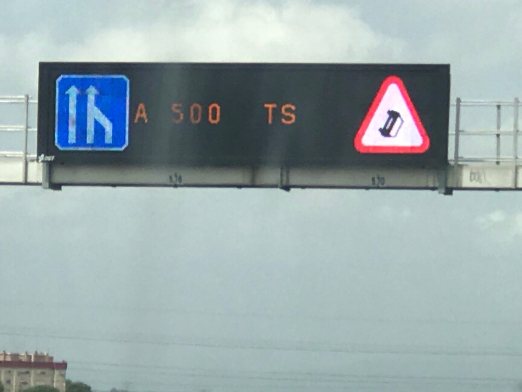 Auf dem Weg gab es auch ein paar lustige – oder unerwartete Schilder zu sehen. Vom ersten Schild war ich dann etwas enttäuscht – das echte Auto stand einfach nur am Rand und lag nicht auf der Seite. Beim Skigebiet haben wir uns natürlich etwas gewundert – aber in Spanien kann es wohl auch etwas kalt werden. Und das letzte Schild ist irgendwie lustig gemacht – gibt es auch in der Bergauf-Version 😉