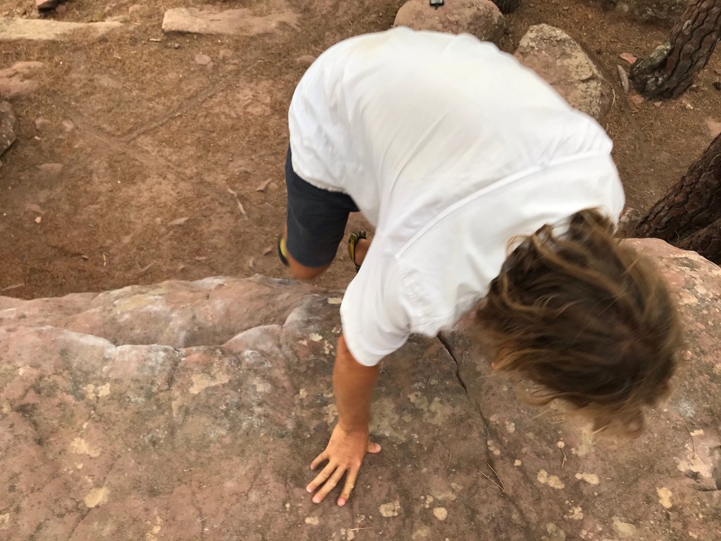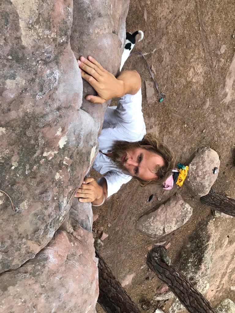 Aber dann machten wir uns auf den Weg von Valencia nach Donostia / San Sebastian (Donostia ist der baskische Name und steht hier auf den Schildern immer zuerst – oder auch alleine). Als ersten Zwischenstopp suchten wir ein Bouldergebiet auf – Albarracin. Da gibt es ganz viele Boulder und endlich konnte das Crashpad mal seine Dienste für den eigentlichen Zweck erbringen – zum Klettern.