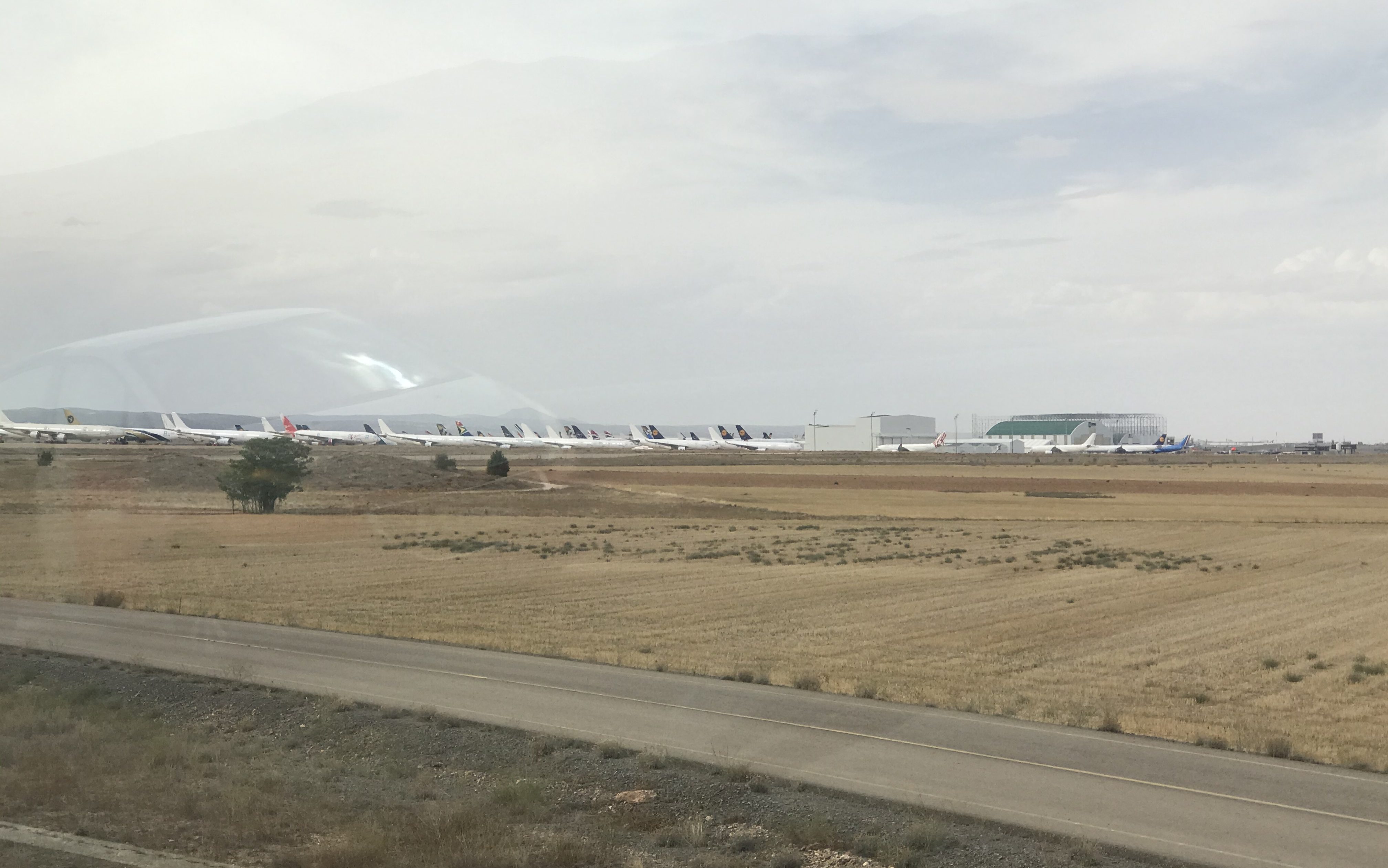 Leider waren wir etwas spät dran und nicht ganz perfekt vorbereitet, so dass wir nur an einem Felsen waren und dann uns anderswo einen Schlafplatz suchten. Und da am nächsten Tag auch Regen angesagt war, blieb es nur bei diesem kurzen Erlebnis. Zwischendurch kamen wir am Flughafen von Teruel vorbei – das ist so ein Flugzeugparkplatz / Friedhof mitten in der Einöde – normale Flüge gibt es dahin nicht.