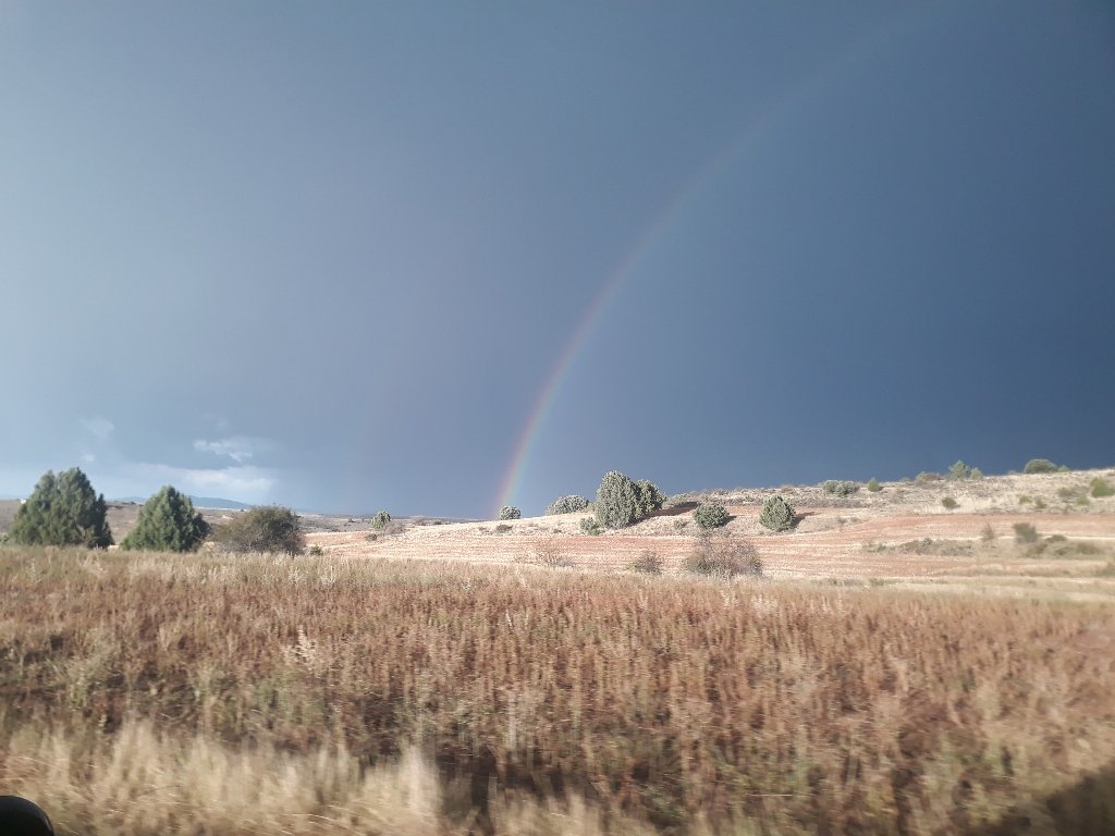 Zwischen Albarracin und Pamplona (berühmt für die Stierkämpfe – aber wir haben nur die Randgebiete gesehen und dort einen Schlafplatz gefunden) gab es mehrmals Gewitter, Regen und sehr starken Regen. Und auch einmal Anfahren am Berg – so steil, dass es trotz Handbremse spannend wurde 🙂