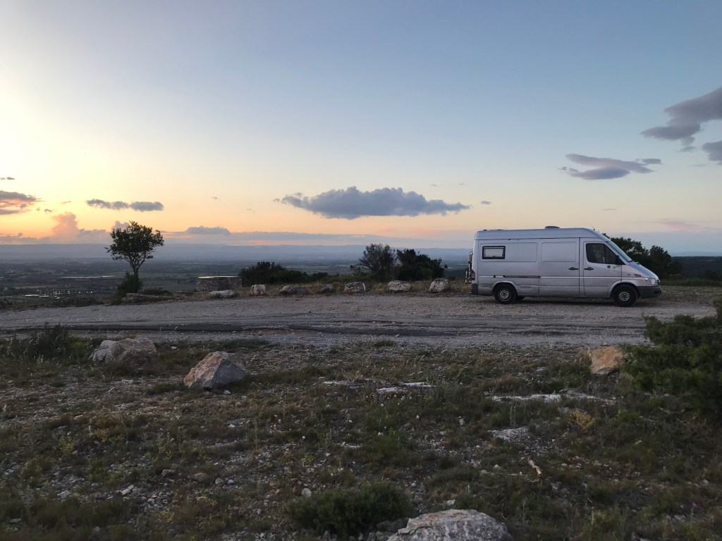 Und weiter bis Narbonne – auf einen Hügel vor der Stadt mit ordentlich Wind und schönem Ausblick.
