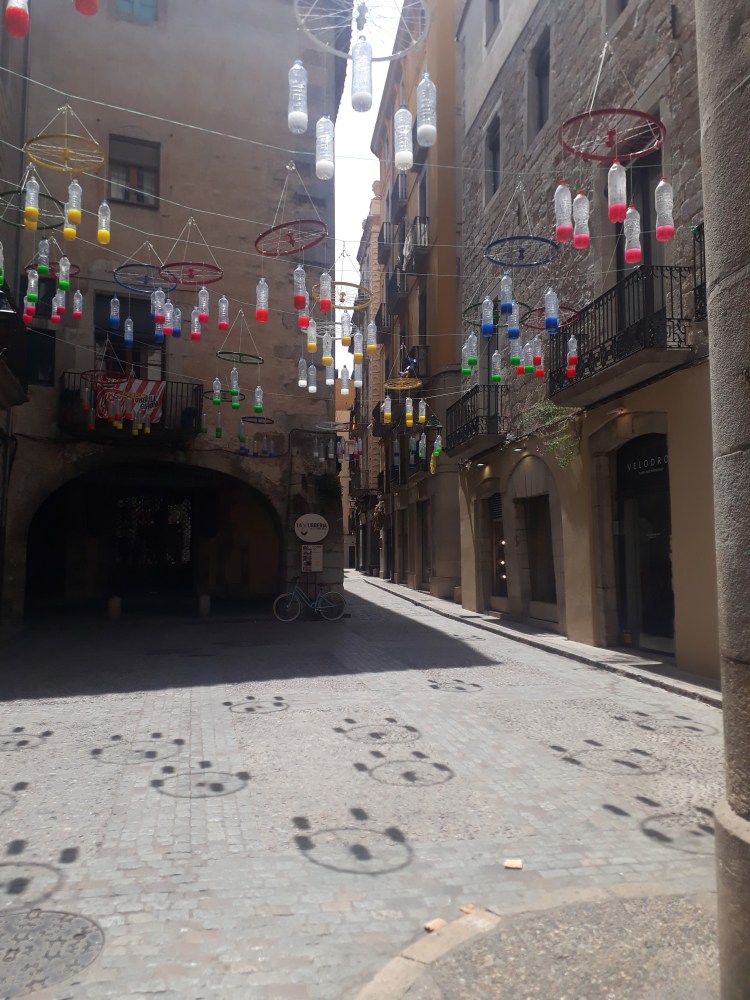 Die nächste Station war dann Girona. Eine hübsche Stadt mit mittelalterlichen Anlagen – nur haben wir davon keine Fotos. Außer von Straßen-Deko: