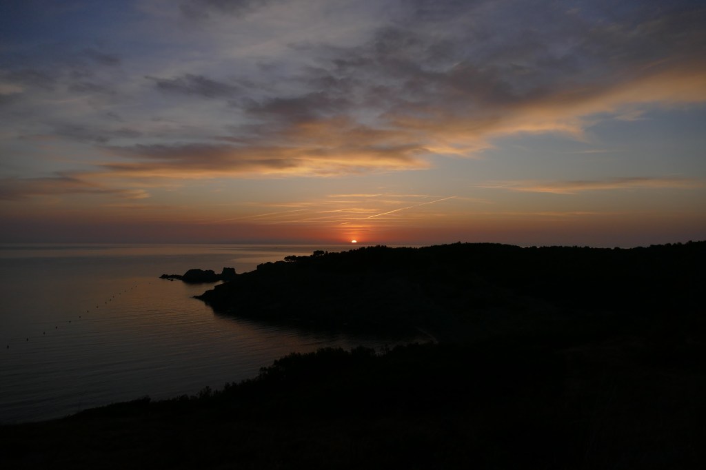 Die erste Station war an der Mittelmeerküste in Spanien nur wenige Kilometer hinter der französischen Grenze – kurz vor Llançá. Da der Doktor unter uns ein „Bewerbungsgespräch“ morgens um 8:30 Uhr hatte, war er schon zum Sonnenaufgang wach und hatte noch Zeit Fotos vom Sonnenaufgang zu machen.