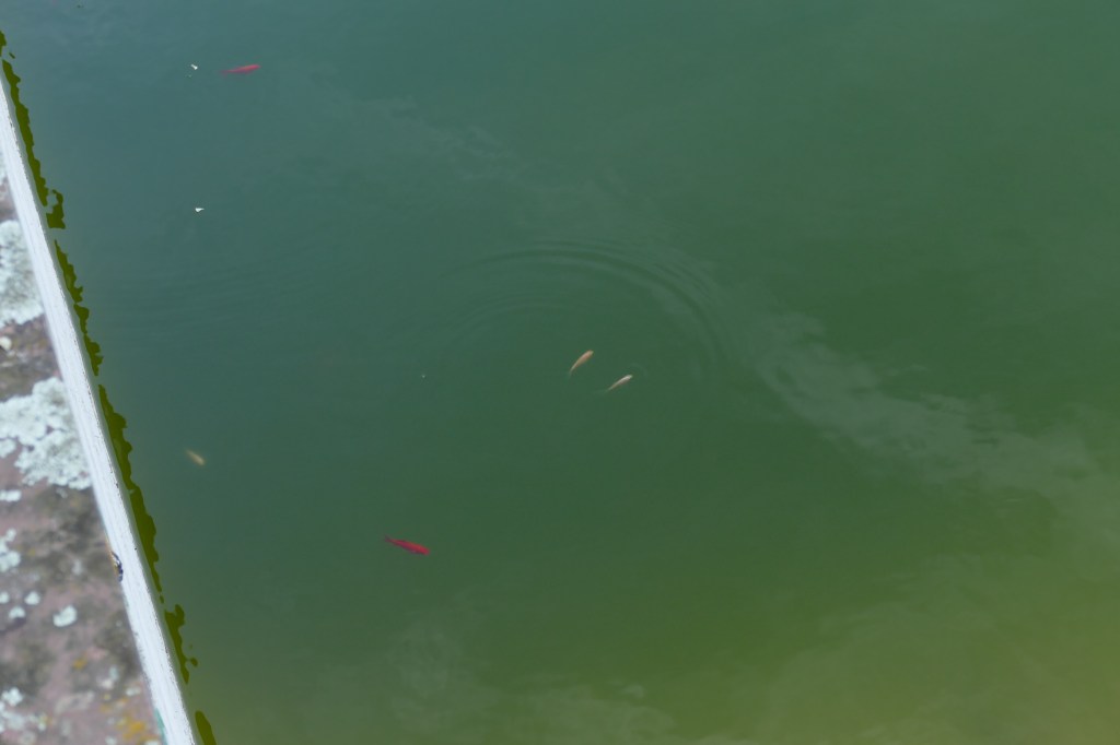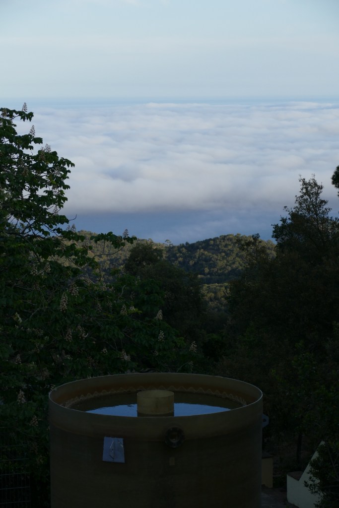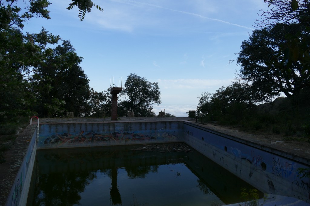 Danach fuhren wir zu einem Parkplatz an einem höhergelegenen Ort an dem es genügend Platz gab für noch einige andere Camper. Speziell war es, da wir direkt an einem verlassenen Ort waren: Pool mit Fischen und einer Schildkröte, und dabei die Wolken über dem Meer nun unter uns lagen.