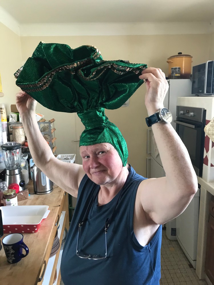 Wir waren also gut beschäftigt und dann kam auch noch eine Mama zu Besuch und setzte sich komische Hüte auf: