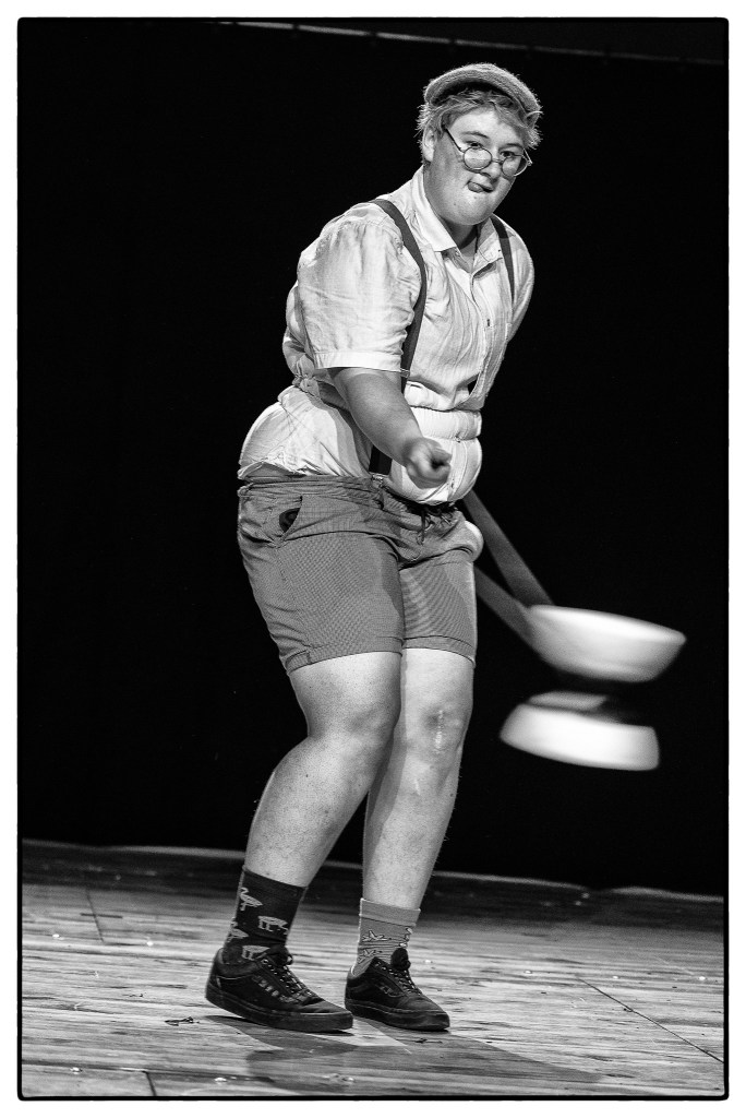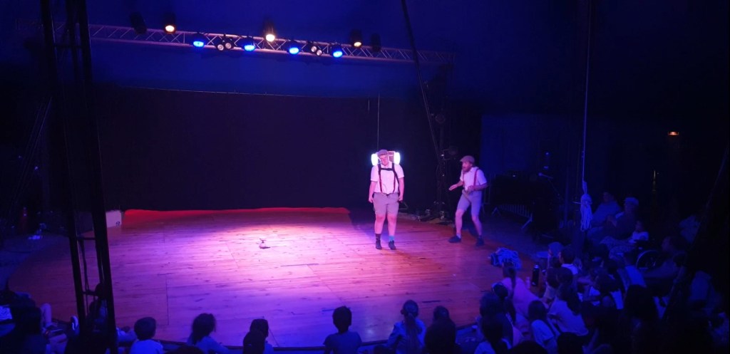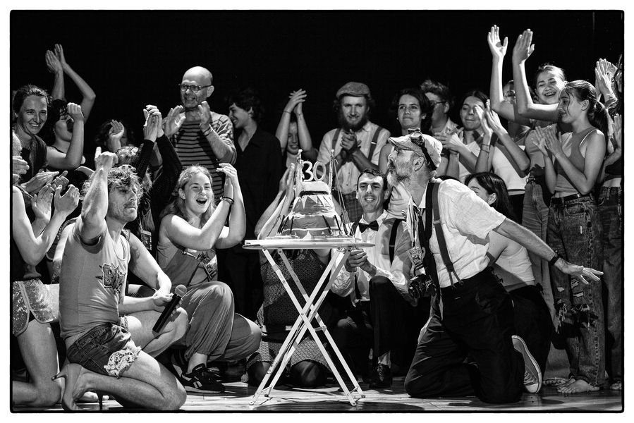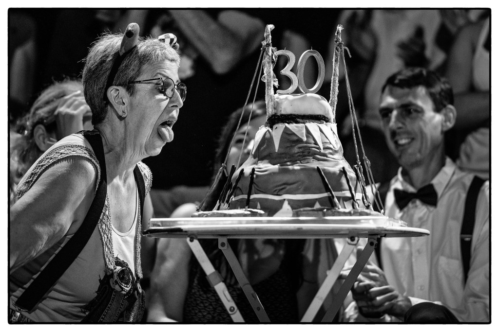 Zu Beginn des Festivals kam eine kleine Anfrage, ob denn jemand einen Kuchen zum 30. Jubiläum machen könnte und da hatte gleich jemand eine Idee. Ein Kuchen in Zirkus-Zelt-Form mit verschiedenen Farben, Masten, Abspanngurten und sogar Rasen außen herum. Zusammen mit dem ganzen Training, der Hitze und anderen technischen Schwierigkeiten führte das zu einer kleinen Nervenkrise – und einem Not-Transport zum Festival-Gelände. Als wir da nachts gegen 2 Uhr ankamen, war der Sicherheitsmensch etwas verwundert, ließ uns aber machen: Kühlschrank leer räumen und dann den Kuchen darin platzieren. Er sprach uns mehrere Male in den nächsten Tagen darauf an und konnte auch ein Stück davon essen.
