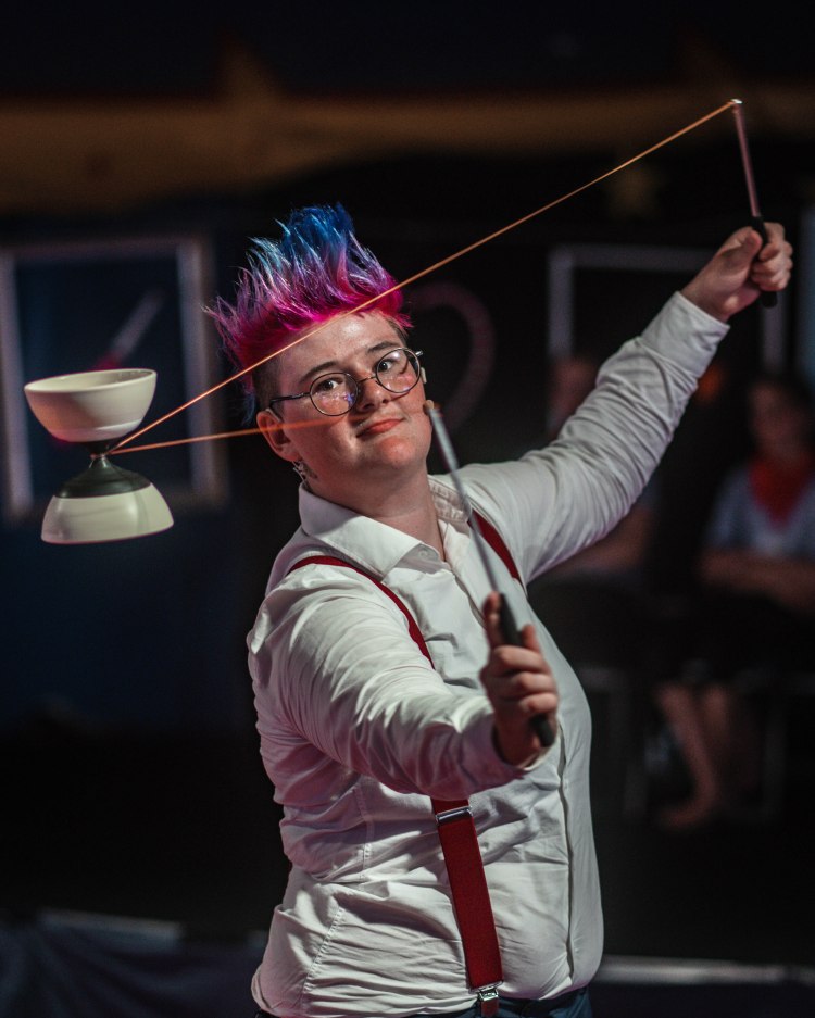 Hey mein Name ist Bente – seit ich 7 Jahre alt war, bin ich beim Zirkus dabei – zunächst bei der Zirkusschule des Circus Fantasias, einem Kinder und Jugendprojekt in Rostock. Dort bin ich zu einer Zirkuskünstlerin herangewachsen. Der Zirkus ist die magische Welt, in der ich mich selbst verwirkliche und die ich gestalte – für mich und das Publikum. Dieses kann für einen Moment aus der alltäglichen Welt in die Magie eintauchen und mit dem Erlebnis ihre eigne Welt verschönern.